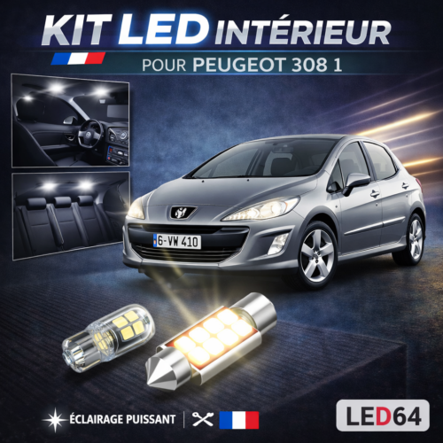 Toutes les ampoules à LED blanc, pour Peugeot 308 1, kit éclairage intérieur, ampoules feux de position, feux de plaque, éclairage plafonnier, éclairage boîte à gants, coffre, bas de porte, sol/pieds, miroirs de courtoisie …