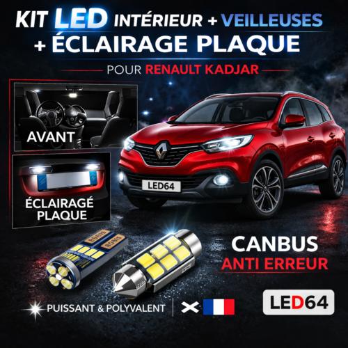 Toutes les ampoules à LED blanc, pour Renault Kadjar, kit éclairage intérieur, ampoules feux de position, feux de plaque, éclairage plafonnier, éclairage boîte à gants, coffre, bas de porte, sol/pieds, miroirs de courtoisie …