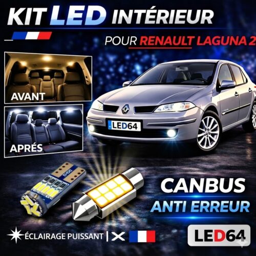 Toutes les ampoules à LED blanc, pour Renault Laguna 2, kit éclairage intérieur, ampoules feux de position, feux de plaque, éclairage plafonnier, éclairage boîte à gants, coffre, bas de porte, sol/pieds, miroirs de courtoisie …