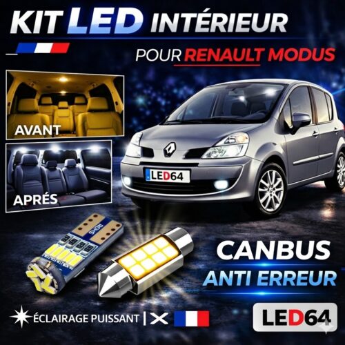 Toutes les ampoules à LED blanc, pour Renault Modus, kit éclairage intérieur, ampoules feux de position, feux de plaque, éclairage plafonnier, éclairage boîte à gants, coffre, bas de porte, sol/pieds, miroirs de courtoisie …