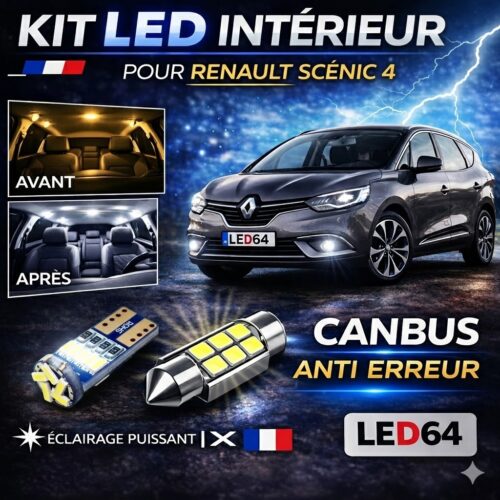 Toutes les ampoules à LED blanc, pour Renault Scenic 4, kit éclairage intérieur, ampoules feux de position, feux de plaque, éclairage plafonnier, éclairage boîte à gants, coffre, bas de porte, sol/pieds, miroirs de courtoisie …