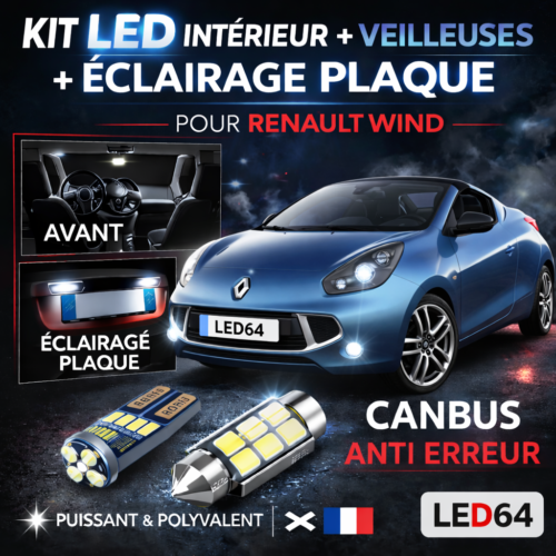 Toutes les ampoules à LED blanc, pour Renault Wind, kit éclairage intérieur, ampoules feux de position, feux de plaque, éclairage plafonnier, éclairage boîte à gants, coffre, bas de porte, sol/pieds, miroirs de courtoisie …