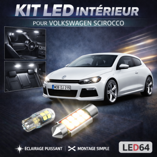 Toutes les ampoules à LED blanc, pour Volkswagen Scirocco, kit éclairage intérieur, ampoules feux de position, feux de plaque, éclairage plafonnier, éclairage boîte à gants, coffre, bas de porte, sol/pieds, miroirs de courtoisie …