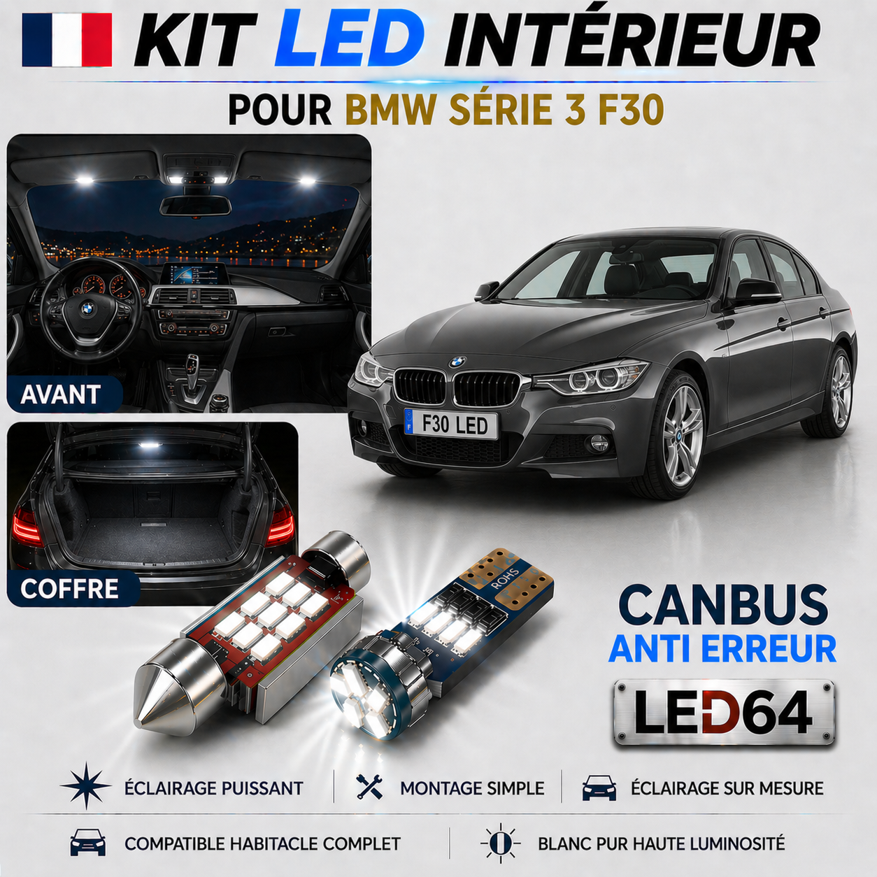 La gamme LED a été conçue pour remplacer parfaitement la configuration des éclairages présents dans la voiture. Cela signifie que les fonctions d’extinction ou d’allumage progressif continueront à fonctionner après l’installation de LED.